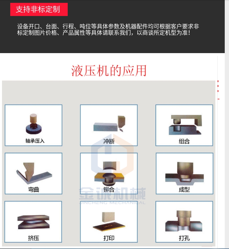 3.用於銅(tóng)管壓扁的同時也可以校正、壓裝、砂輪成型、塑(sù)料(liào)製品、橡膠製品及粉(fěn)末製品的壓製(zhì)成型比如:集成吊頂(dǐng) 汽車內飾件成(chéng)型(xíng)。